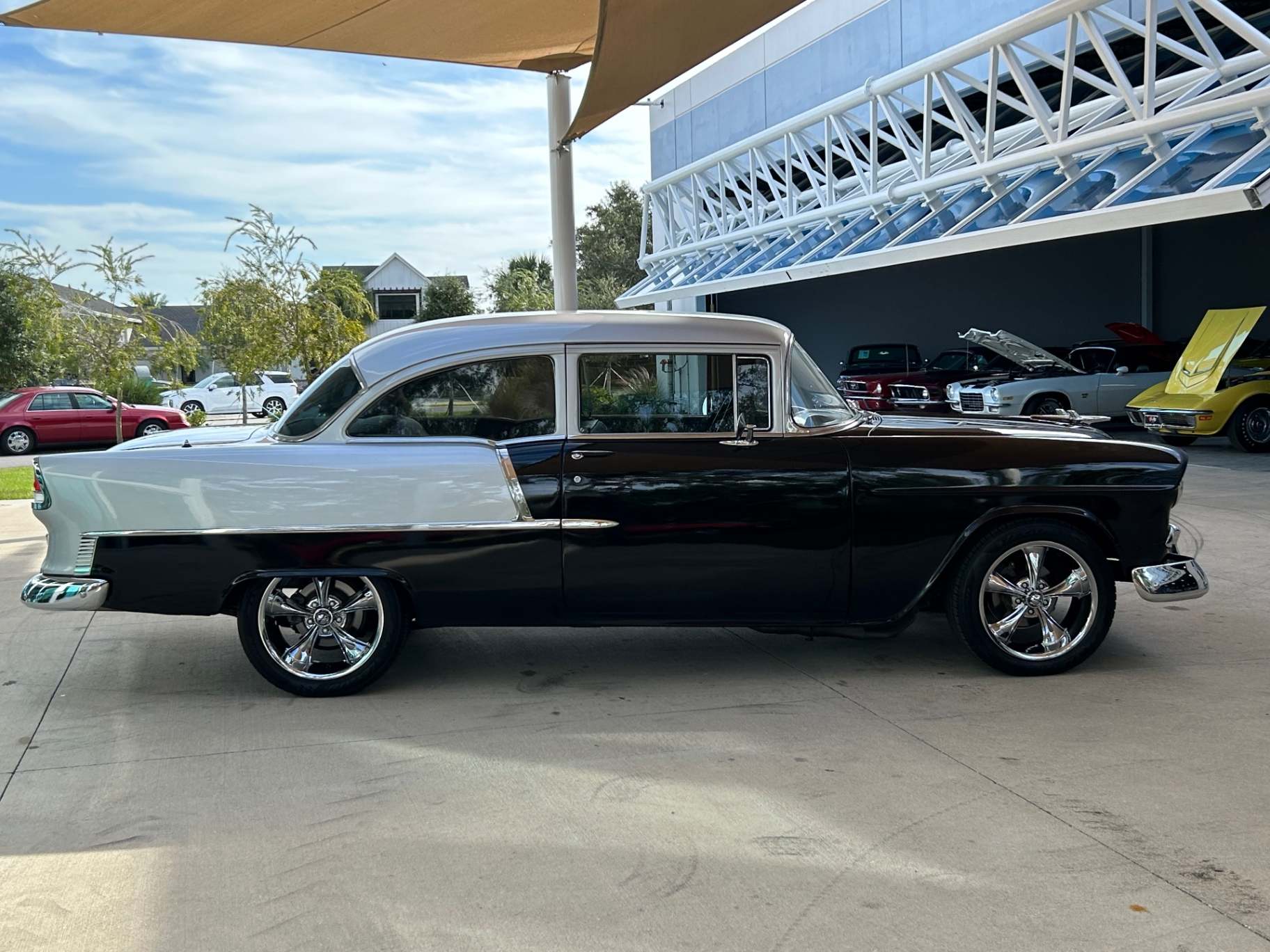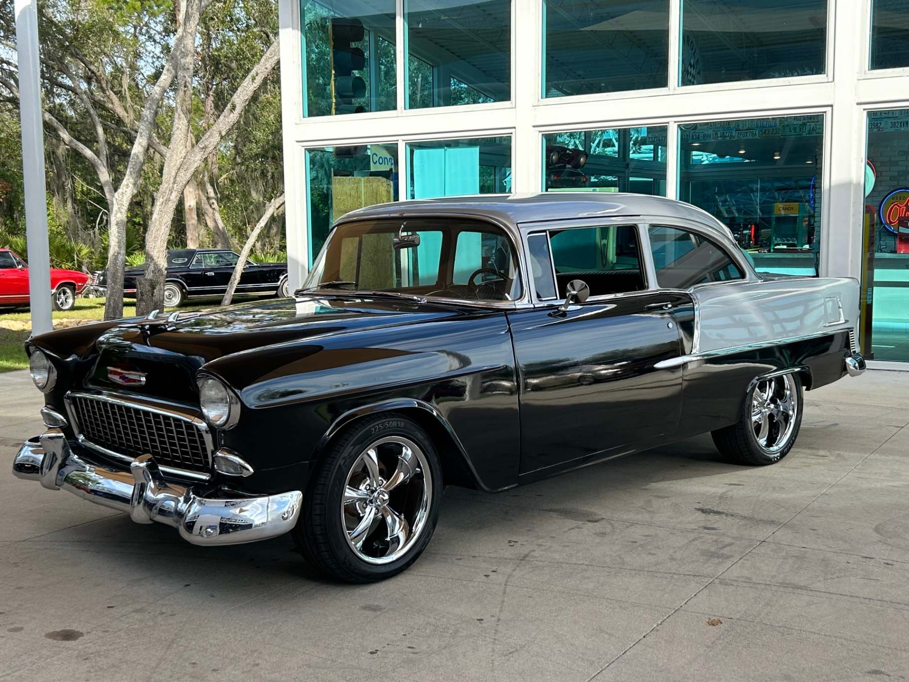 Under the hood, the 1955 Chevrolet Black Bel Air is equipped with a powerful engine that delivers impressive performance. Coupled with an automatic transmission, this car offers a smooth and effortless driving experience. With only 1,185 miles on the odometer, it is clear that this vehicle has been meticulously maintained and cared for over the years, making it even more desirable to collectors and enthusiasts.